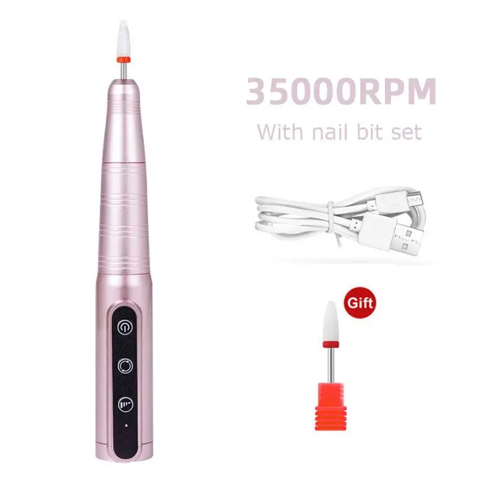 Diseño inalámbrico. Funciona sin ningún adaptador USB. La batería de litio recargable incorporada de la máquina pulidora de uñas, que está completamente cargada durante aproximadamente 1-2 horas, la lima de uñas eléctrica funcionará hasta 1-2 horas. 3 niveles de Interruptor de velocidad, presione el botón y cambie 15000rpm/26000rpm/35000rpm. También puede funcionar mientras se recarga con un banco de energía o un adaptador USB.