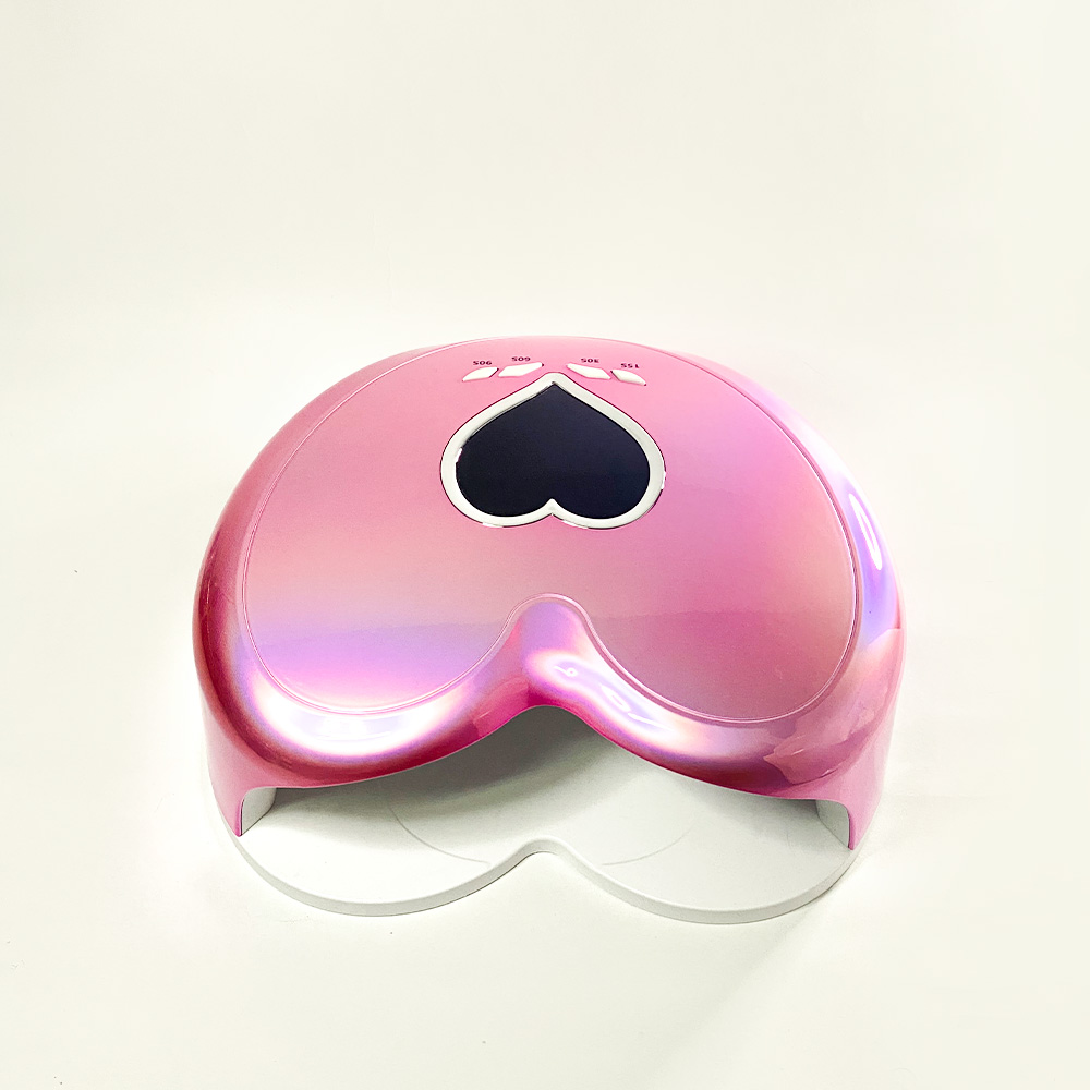 Lámpara 96 watts en forma de corazón, con tiempos de 15, 30, 60 y 90 segundos. Ideal para uso profesional en procedimientos de uñas