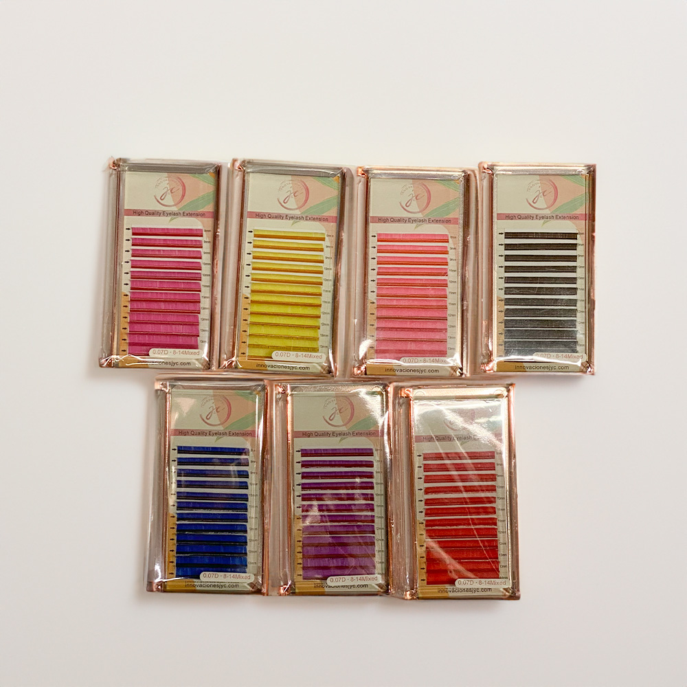 Domicilios contraentrega en Medellin y todo el país 100% garantizadosPestañas de colores mixtas en 0.07D, con largo desde 8mm hasta 14mm, ideal para tus procedimientos en los que requieres colores específicos